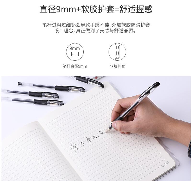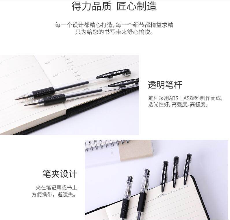 得力文具33140中性筆學生考試量販式黑筆水筆碳素筆0.5mm辦公用品包郵書寫工具60支裝