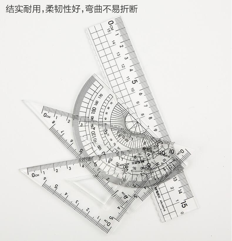 晨光文具 透明套尺 亞克力四件套15cm直尺三角板量角器學(xué)生用考試?yán)L畫專用制圖測量隨身便攜多功能幾何工具